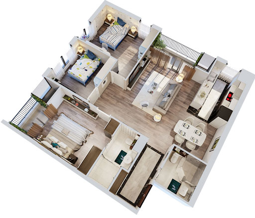 Đặc biệt, căn hộ 4 phòng ngủ là dòng sản phẩm cao cấp với diện tích lớn, thường được bố trí tại các vị trí đẹp trong tòa nhà. Thiết kế chú trọng sự sang trọng và tiện nghi, phù hợp với những gia đình đông thành viên hoặc khách hàng có nhu cầu không gian sống rộng rãi và đẳng cấp.