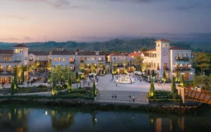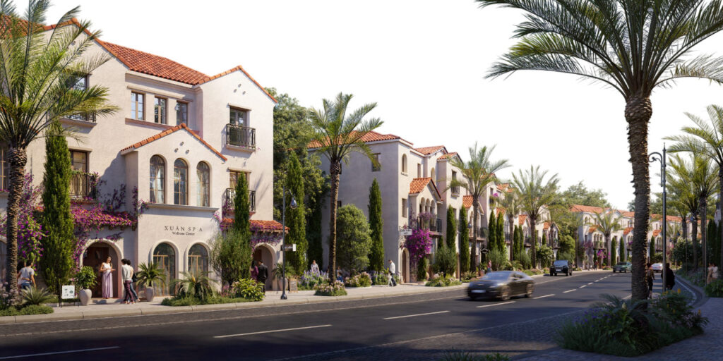 Bên cạnh đó, hệ sinh thái thương mại – giải trí được phát triển theo mô hình “All-in-one”, đáp ứng trọn vẹn nhu cầu sống – làm việc – vui chơi trong một không gian khép kín. Trung tâm của dự án là Megamall – tổ hợp thương mại quy mô lớn hội tụ các thương hiệu quốc tế cao cấp, tích hợp mua sắm, ẩm thực và giải trí, hứa hẹn trở thành điểm đến sầm uất của toàn khu vực phía Tây. Song hành cùng đó là Stripmall – dãy phố thương mại kiểu mới được thiết kế như tuyến phố đi bộ nhộn nhịp, nơi các cửa hàng, quán cà phê, nhà hàng và boutique trải dài theo trục cảnh quan xanh mát, tạo nên không khí lễ hội rực rỡ suốt ngày đêm.